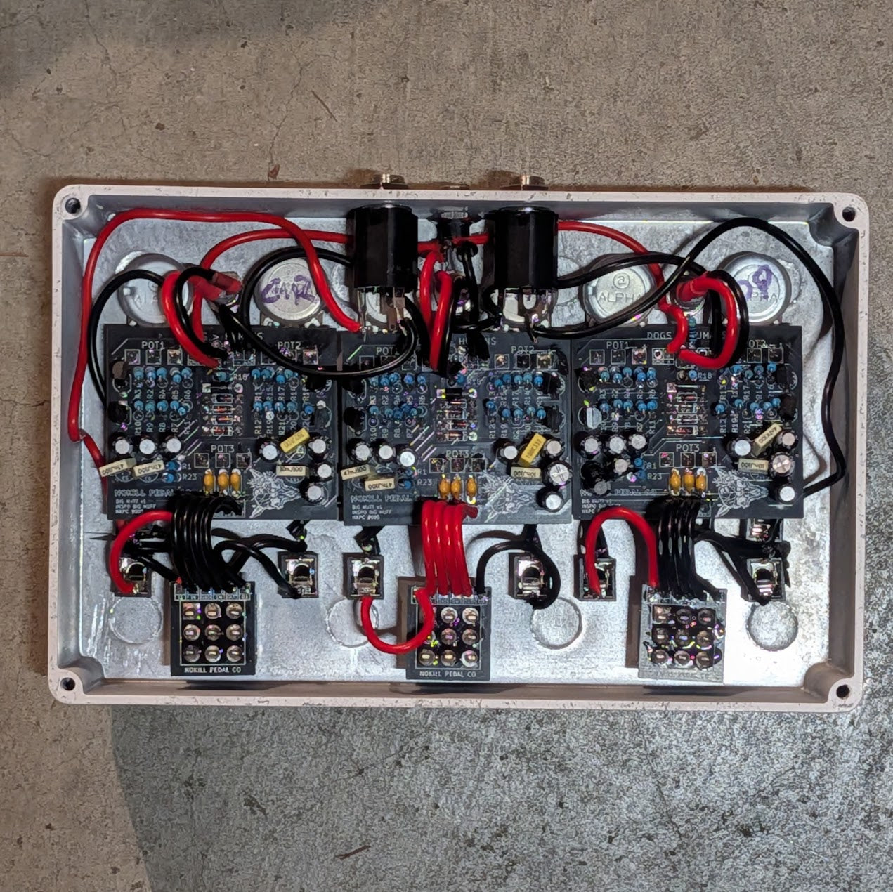 The Bork Bork Bork isn’t just another Big Muff clone—it’s a snarling, three-headed fuzz beast with a signal patch bay that lets you reroute, stack, or blend three legendary Muff-style circuits for total tonal annihilation.