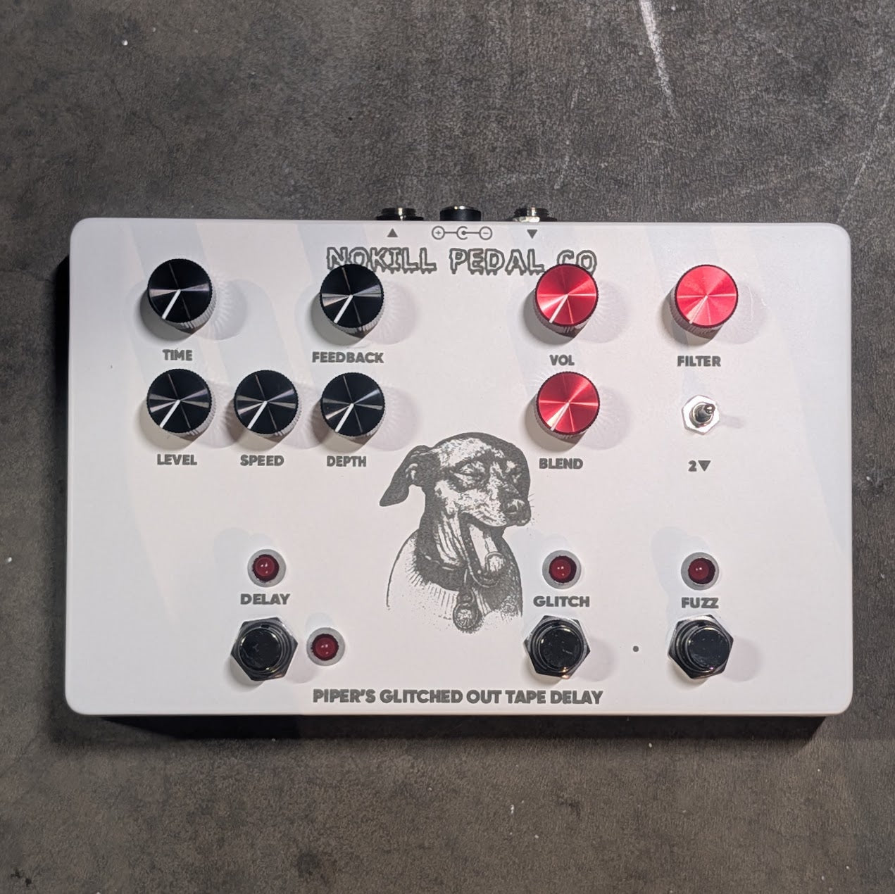 The Piper’s Glitched Out Tape Delay is a sonic experiment gone perfectly wrong—fusing the glitch-heavy textures of NOKILL’s Borzoi Glitch Fuzz with a warm, warbly tape echo delay for a pedal that’s equal parts destruction and depth.